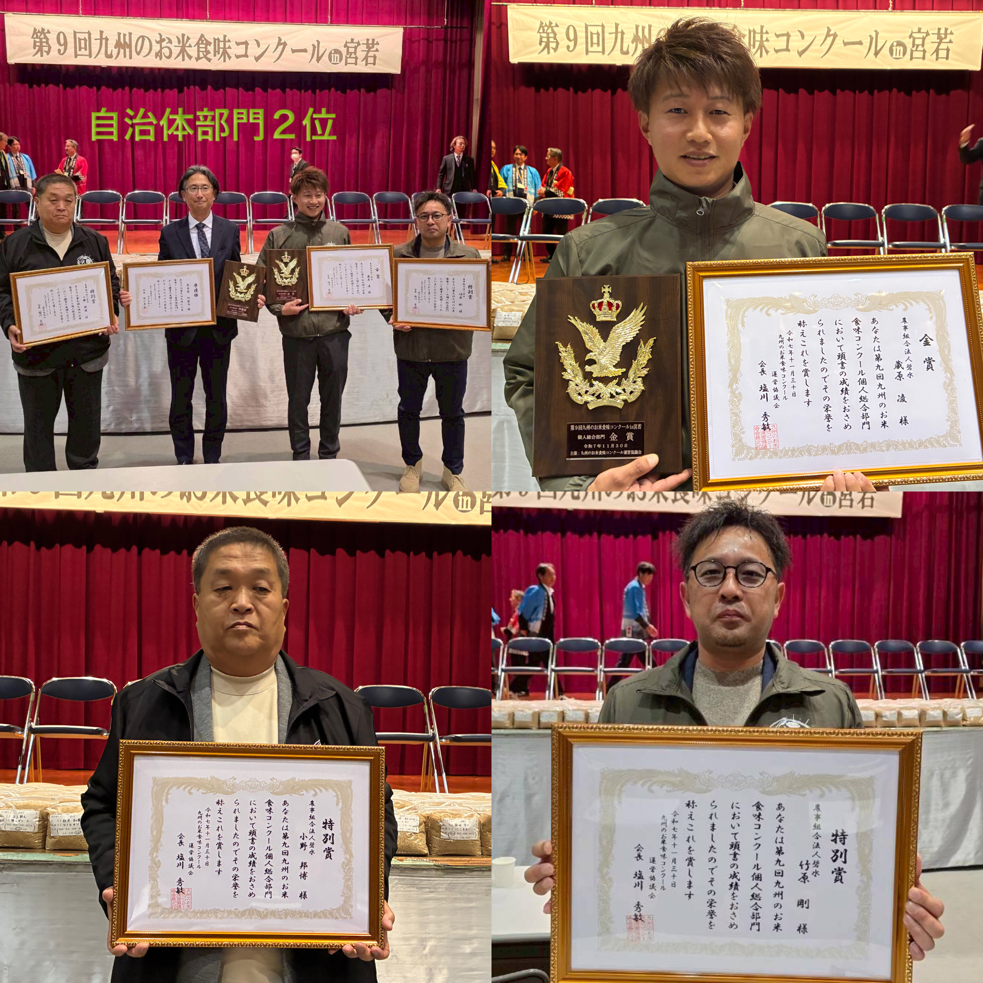 九州のお米食味コンクールin宮若で当法人の生産者が好成績を受賞することができました‼️